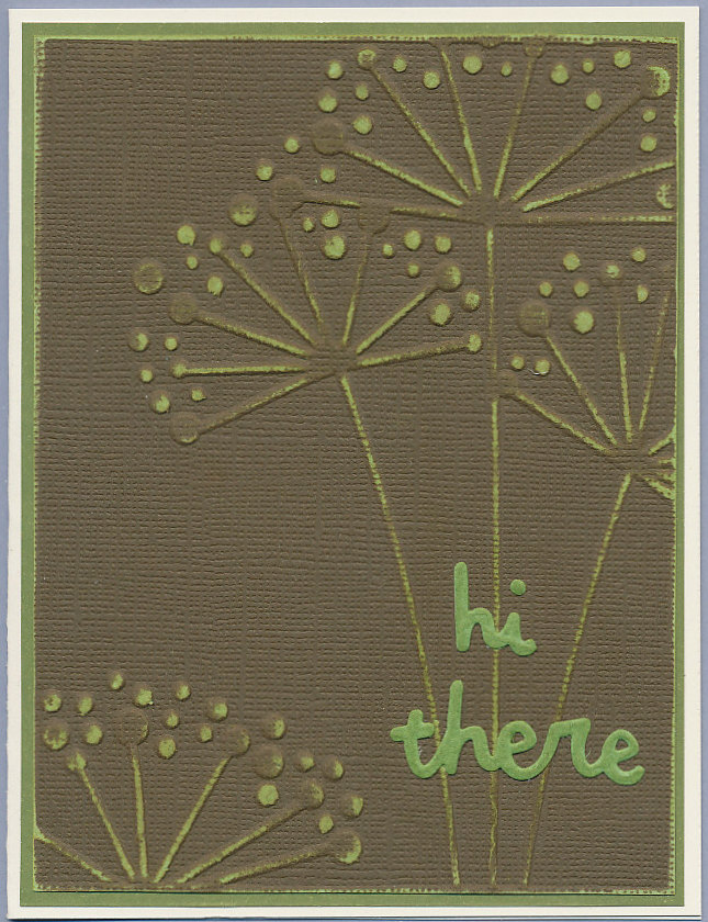 I used Memento New Sprout ink on the last 2 because I think it helped. Now to see what I can come up with to use some of my other embossing folders and sandpaper.